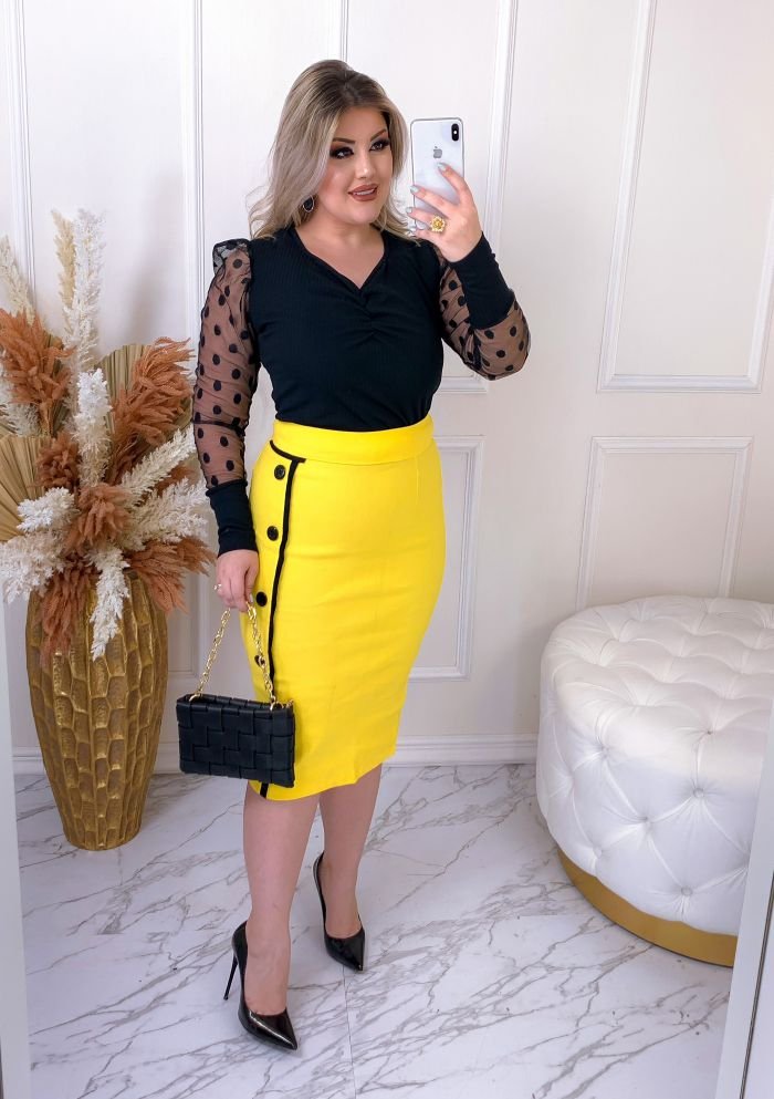 Seja o primeiro a avaliar “Saia Mariana Amarelo Gema c/ Botões”