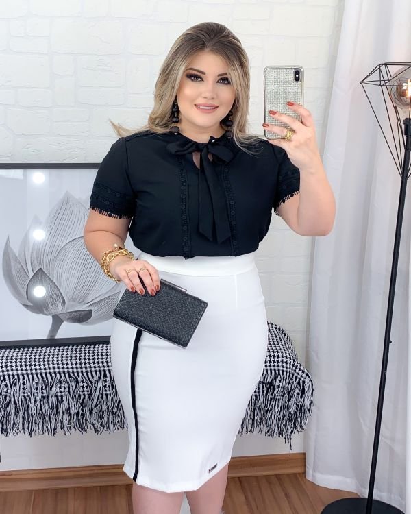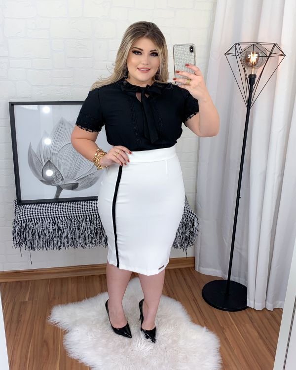Saia Mariana Branco c/Viés Preto