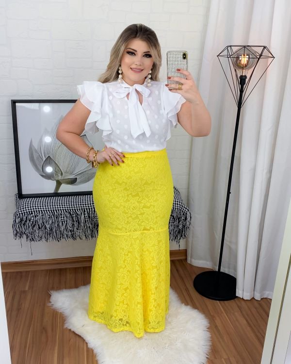 Início » Todos os produtos » Saia Sereia de Renda Arrastão Amarelo Gema