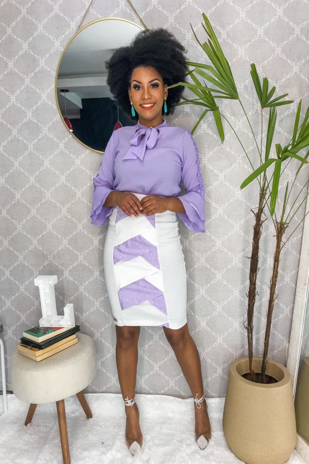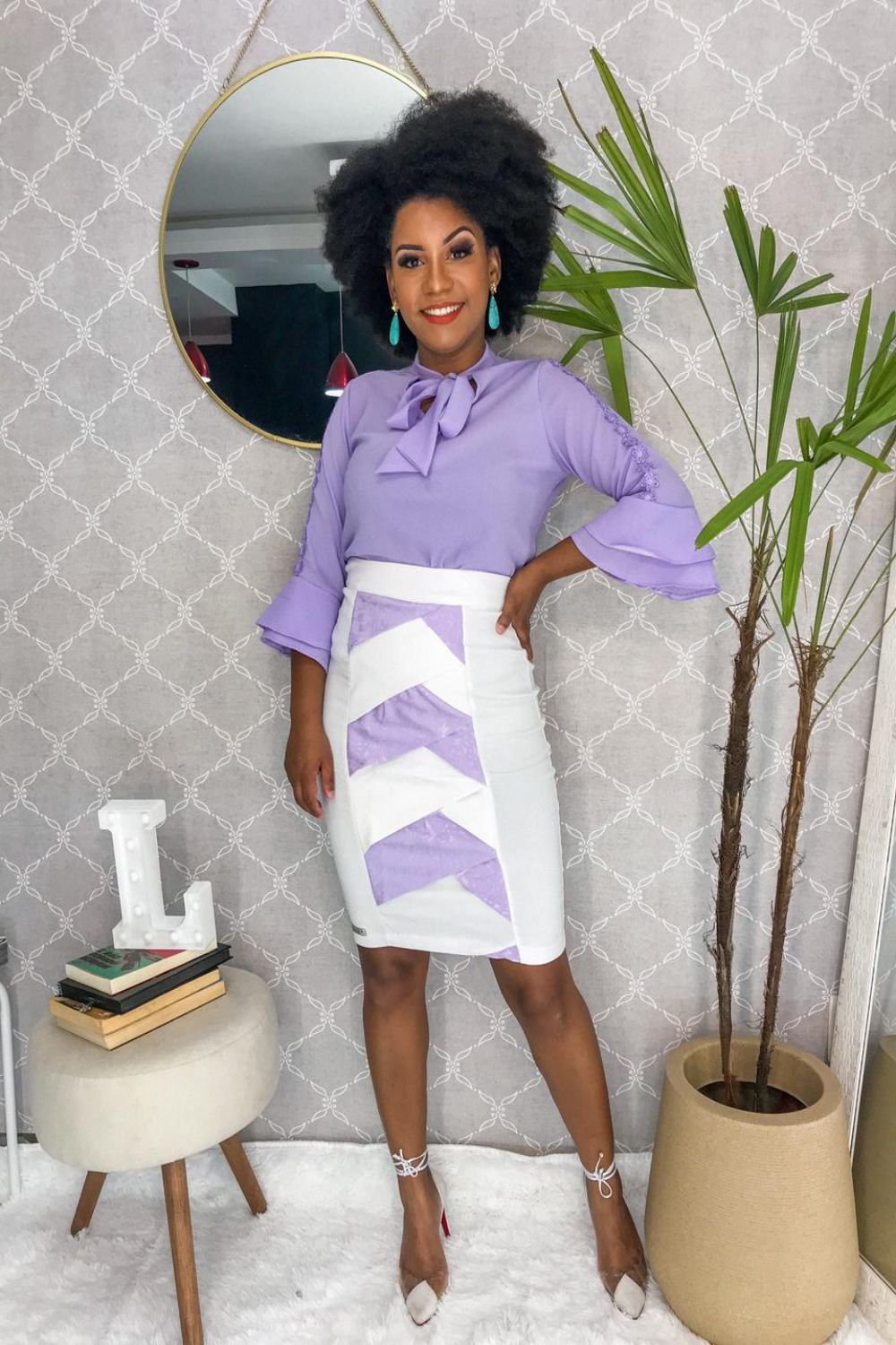 Saia Suzana branco/lilás