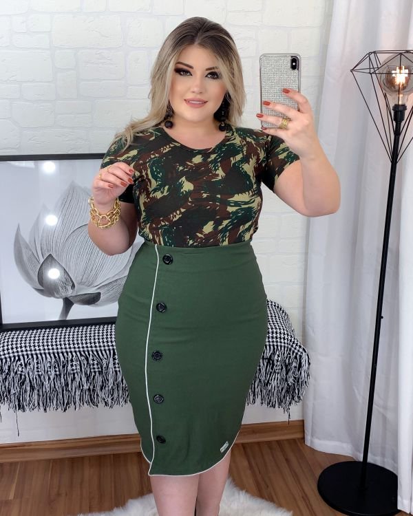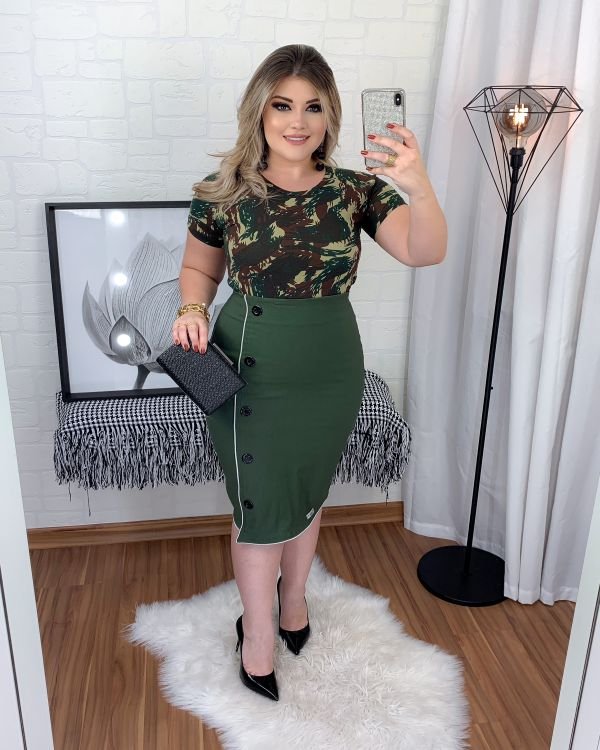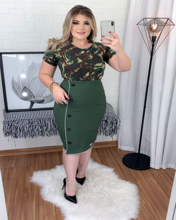 Saia Zíper Jacaré Verde Militar c/Botões