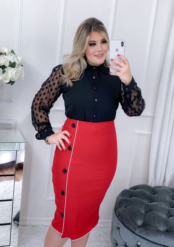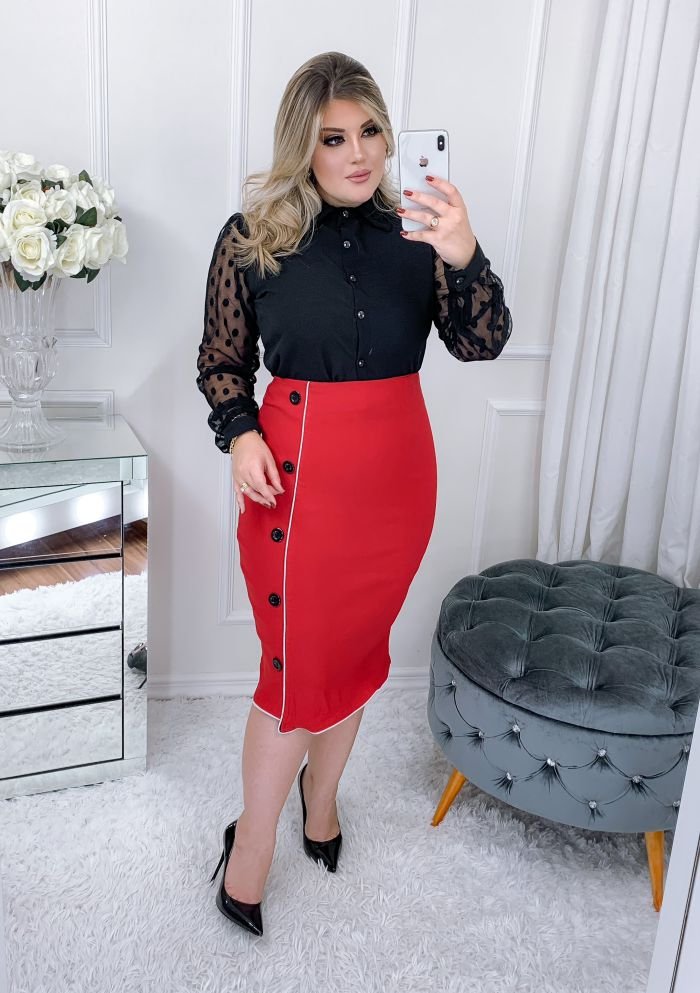 Seja o primeiro a avaliar “Saia zíper jacaré vermelha c/botões”