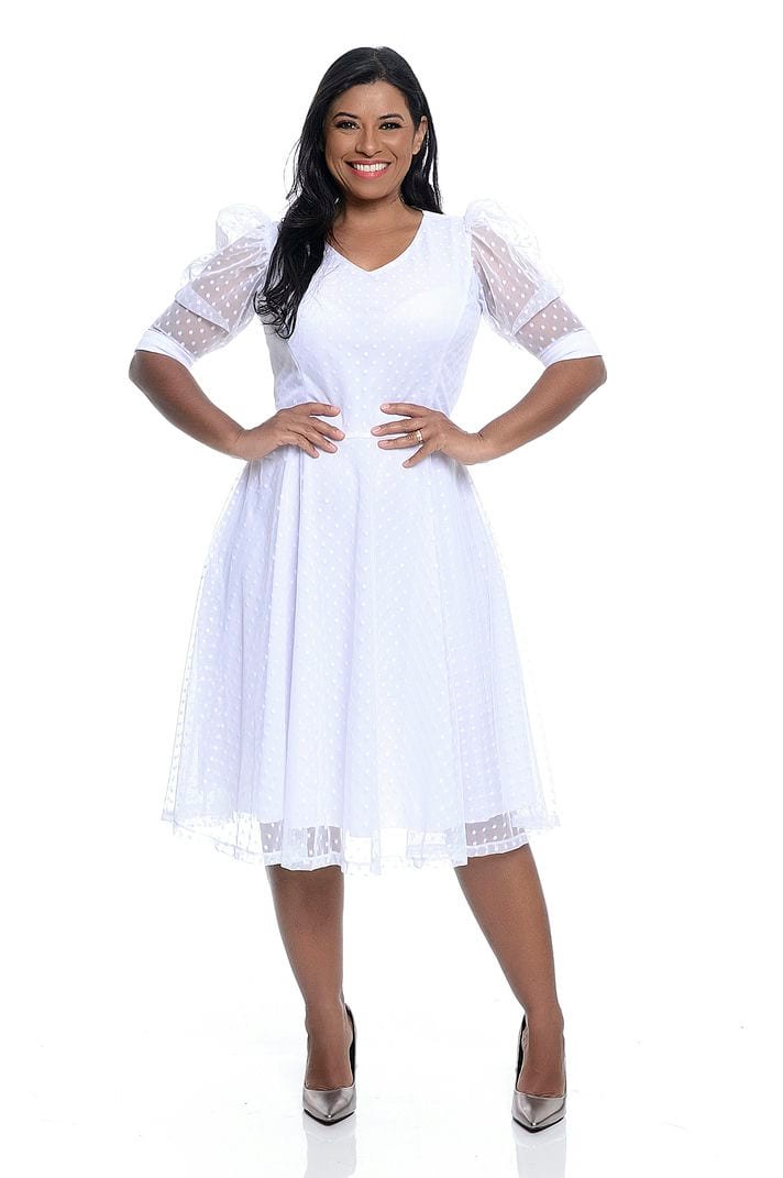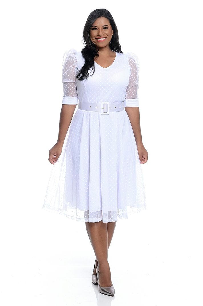Vestido em tule poazinho, todo forrado em elanca light aconpanha o cinto forrado do mesmo tecido do forro revestido em couro