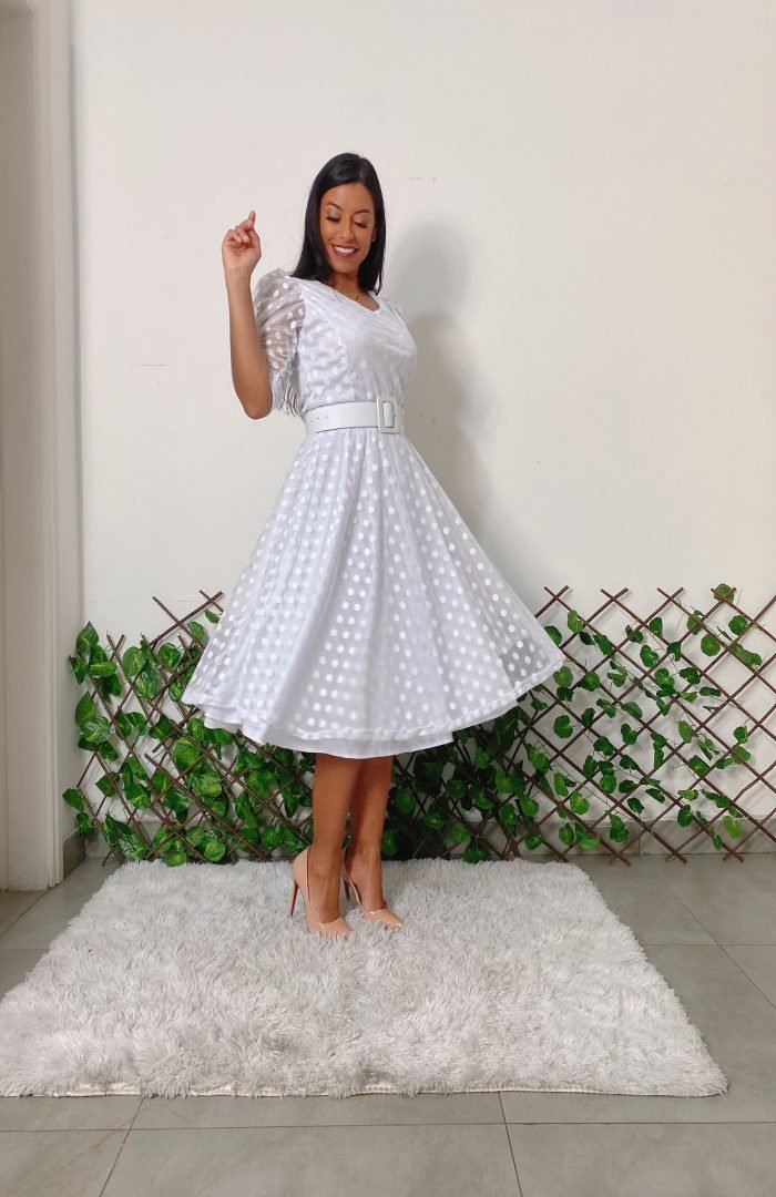 O Tule de Poá também é conhecido como Tule Point Sprit, é um tule leve com fios trançados que formam um tipo de rede transparente, possui pequenos bordados em formatos semelhantes a de bolinhas. O Tule de Poá é um tecido elegante e romântico muito utilizado na moda festa.